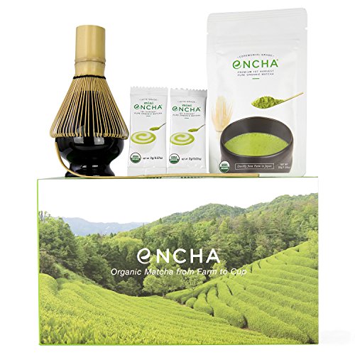 - A great starter kit with Ceremonial-grade Encha (30g), Latte-grade Encha (mini), matcha whisk, whisk holder, matcha scoop, and pamphlet all inside a beautiful Encha Farm box.